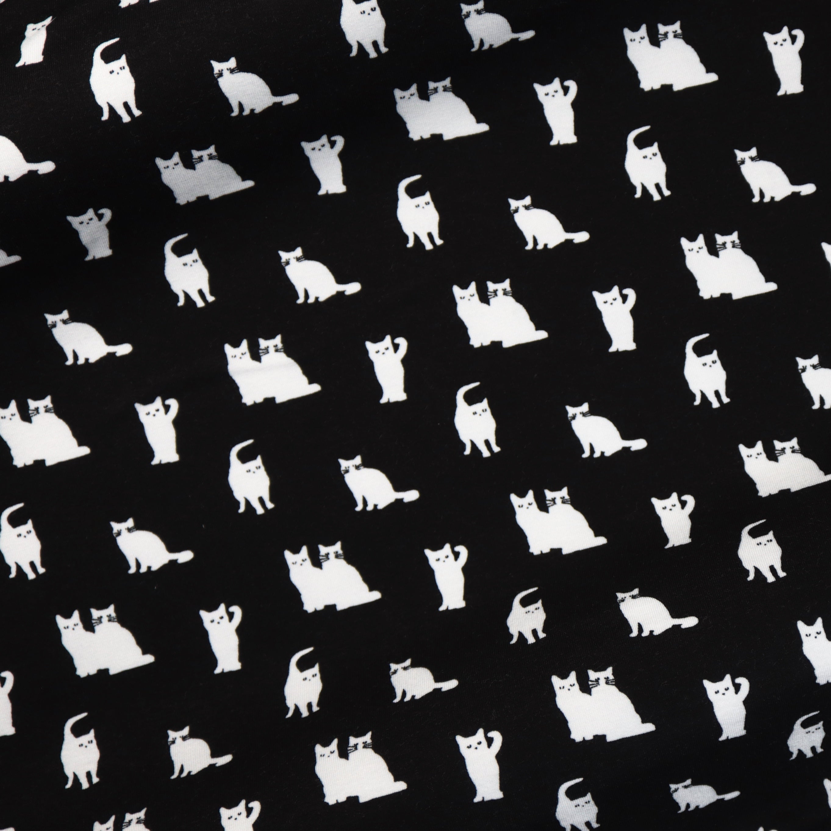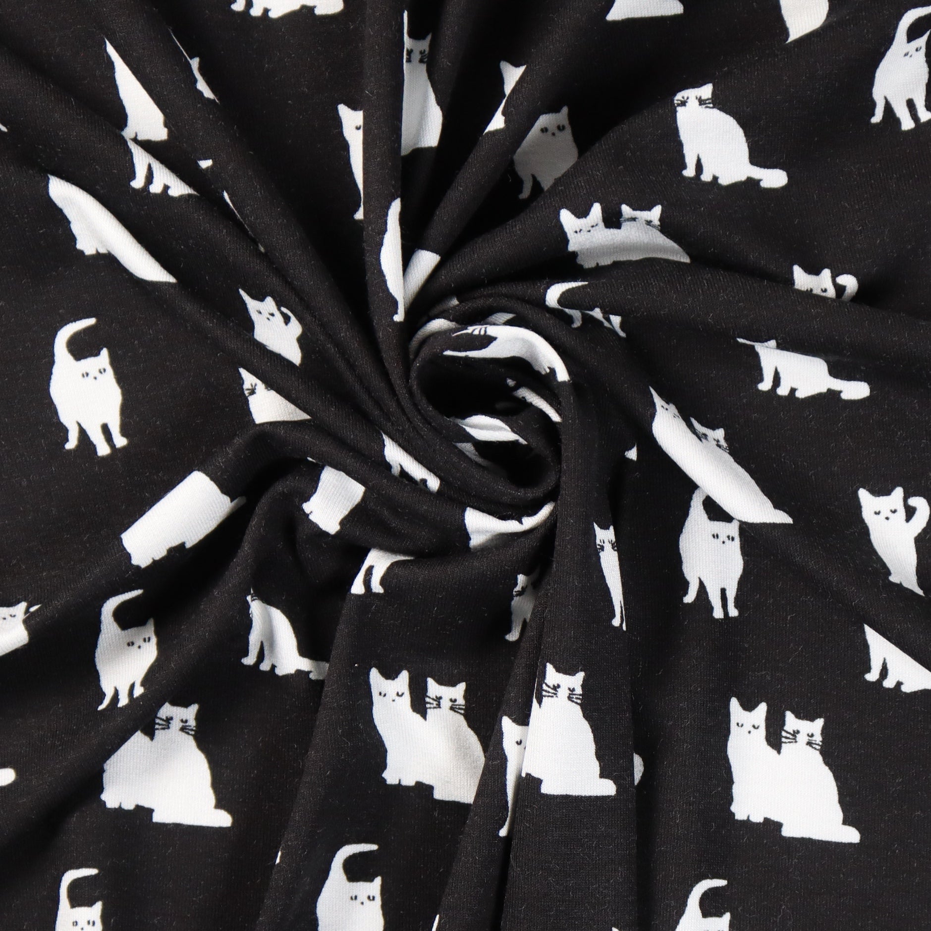 This ultra-comfortable jersey is printed with several many adorable cats. A classic in black and white, this fabric could pair with so many other colours!