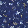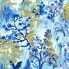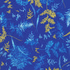 Touches of metallic gold pop against brilliant blues in this stunning collection by Lauren Wan for Robert Kaufman.