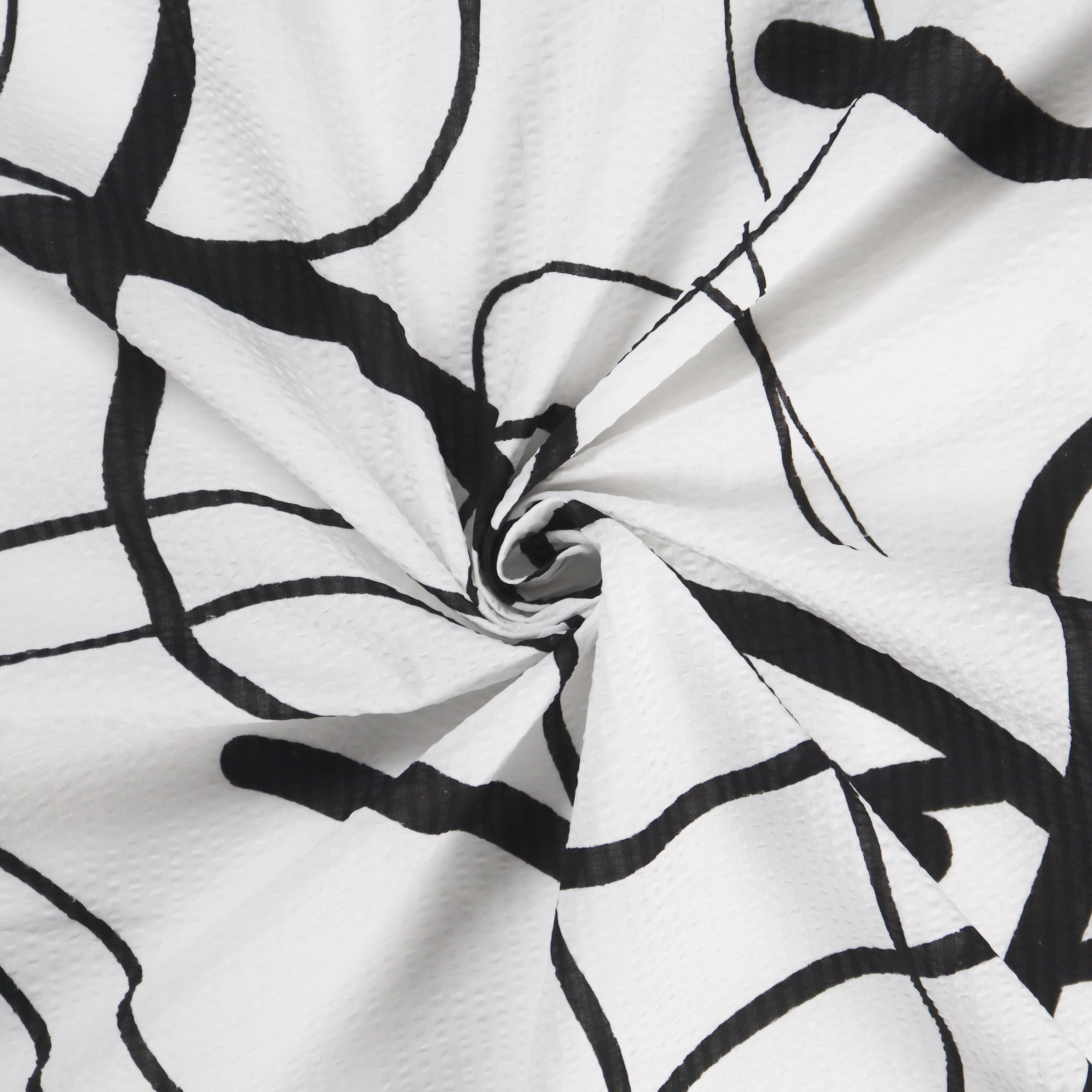 This fabric has so much going for it: The crisp texture of seersucker, a classic white and black combination, and a bold, playful print. We're picturing a head to toe black and white look OR you could combine this print with a bright shoe and handbag.