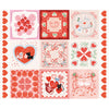 Lizzie House has brought her signature style to this collection that celebrates all things Valentine's Day. In a sweet range of pink, red, and sky blue we see charming postage stamps, cozy cats and dogs, and cheerful strawberries and mushrooms.