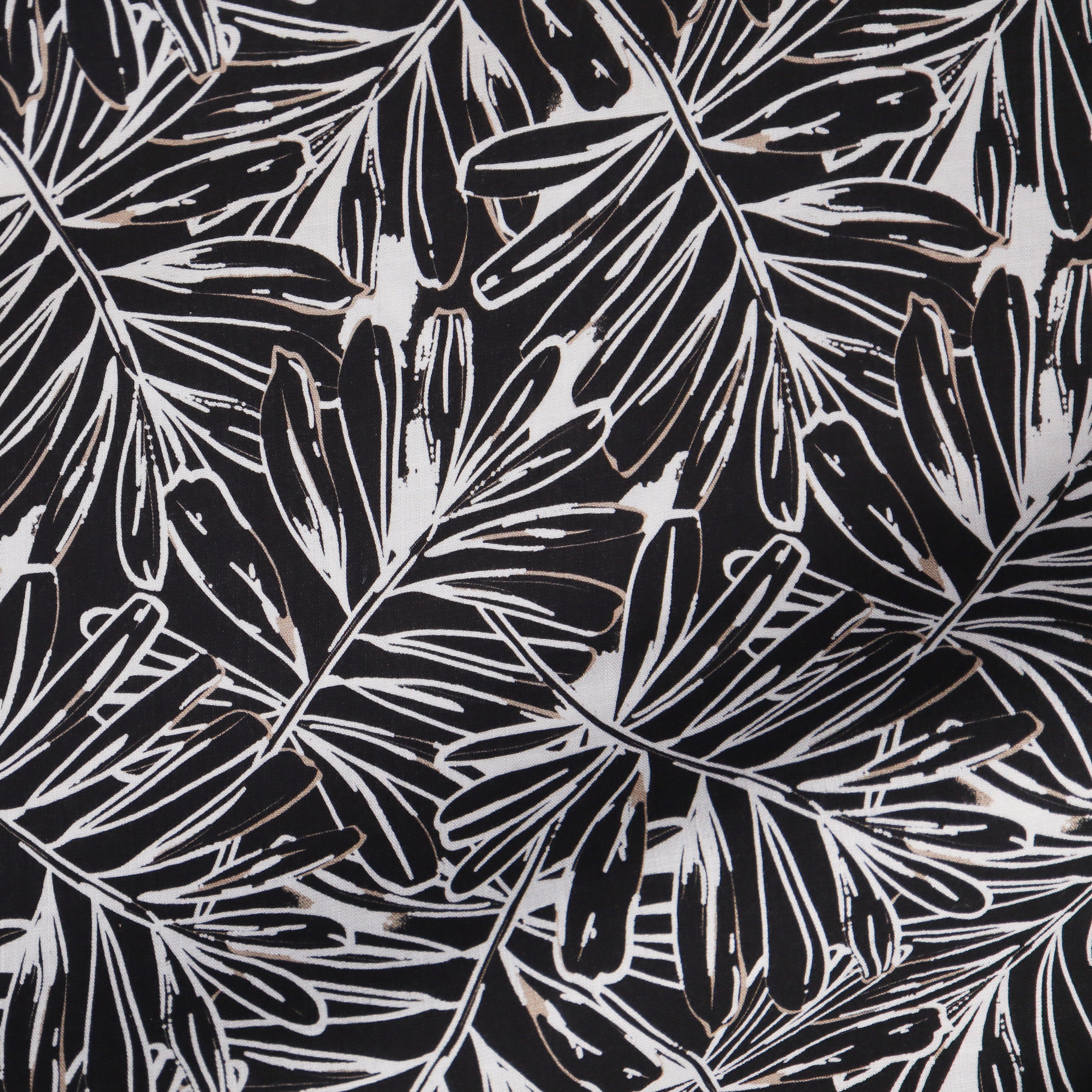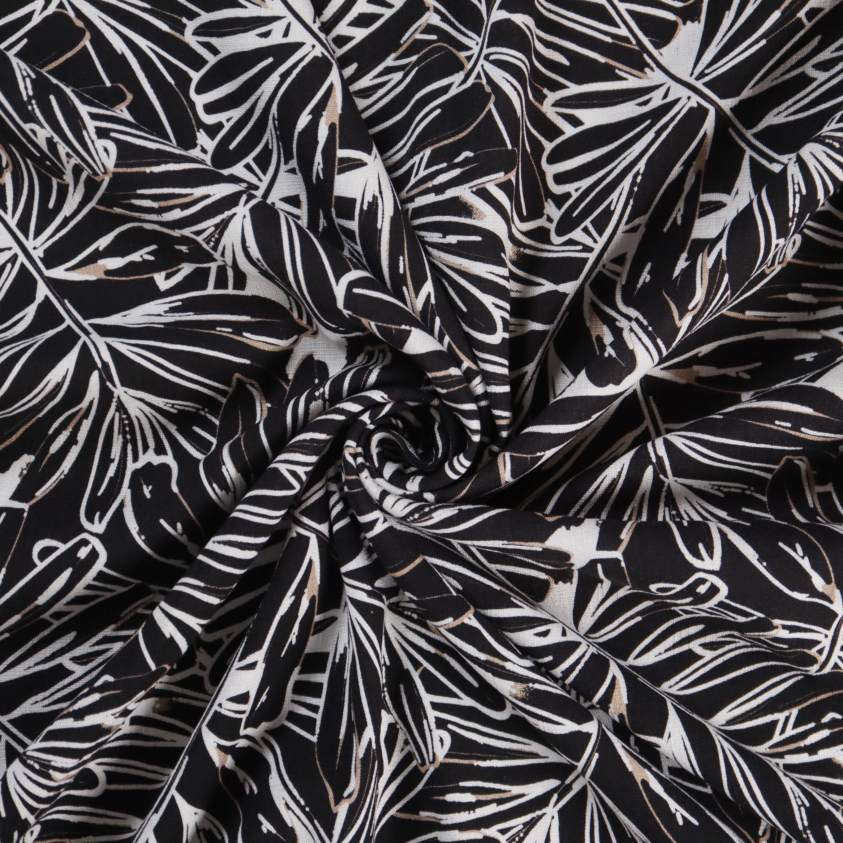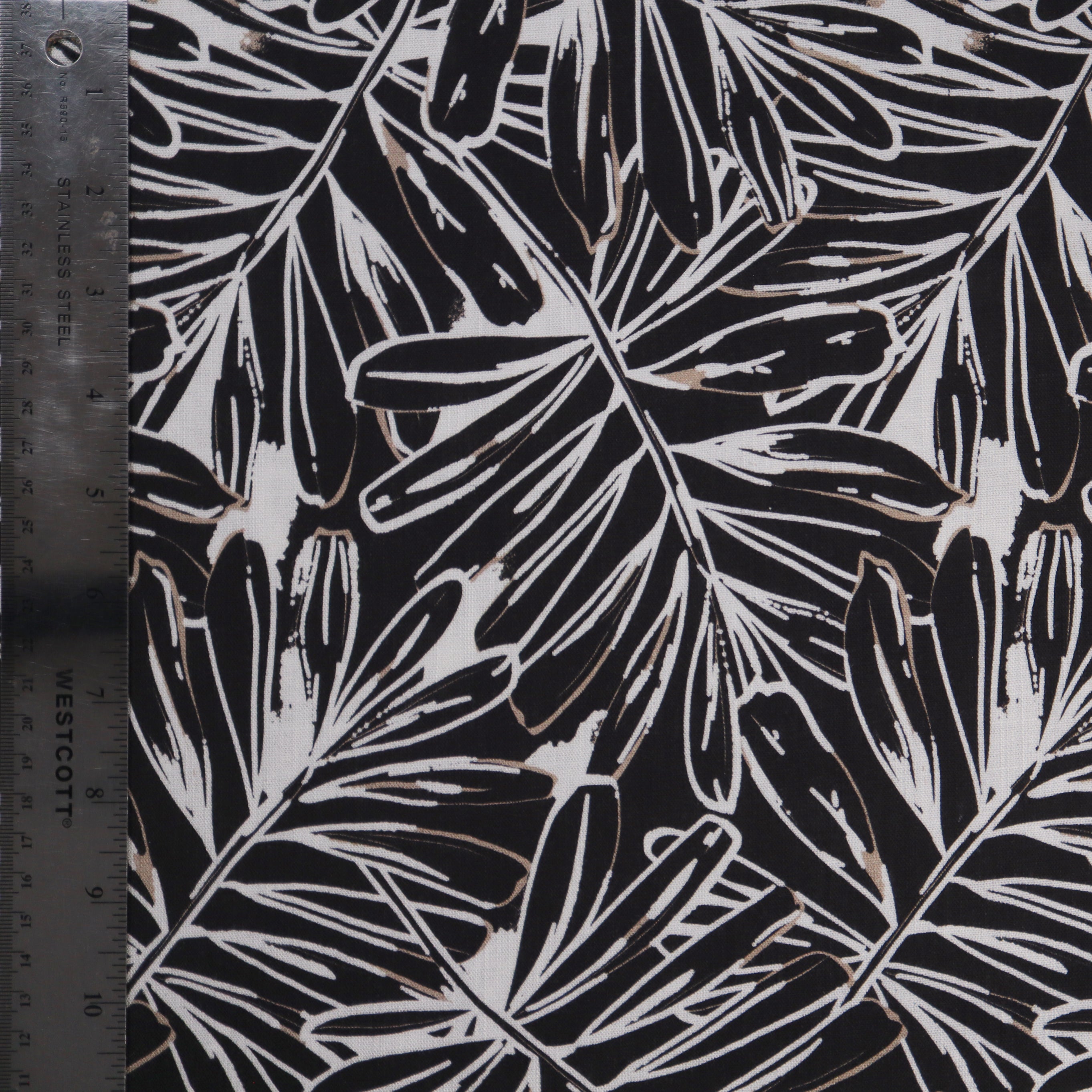This striking black and white tropical leaf pattern has a little bit of beige as well to help warm up the print. It is perfect for a spring or summer dress, skirt, or top.