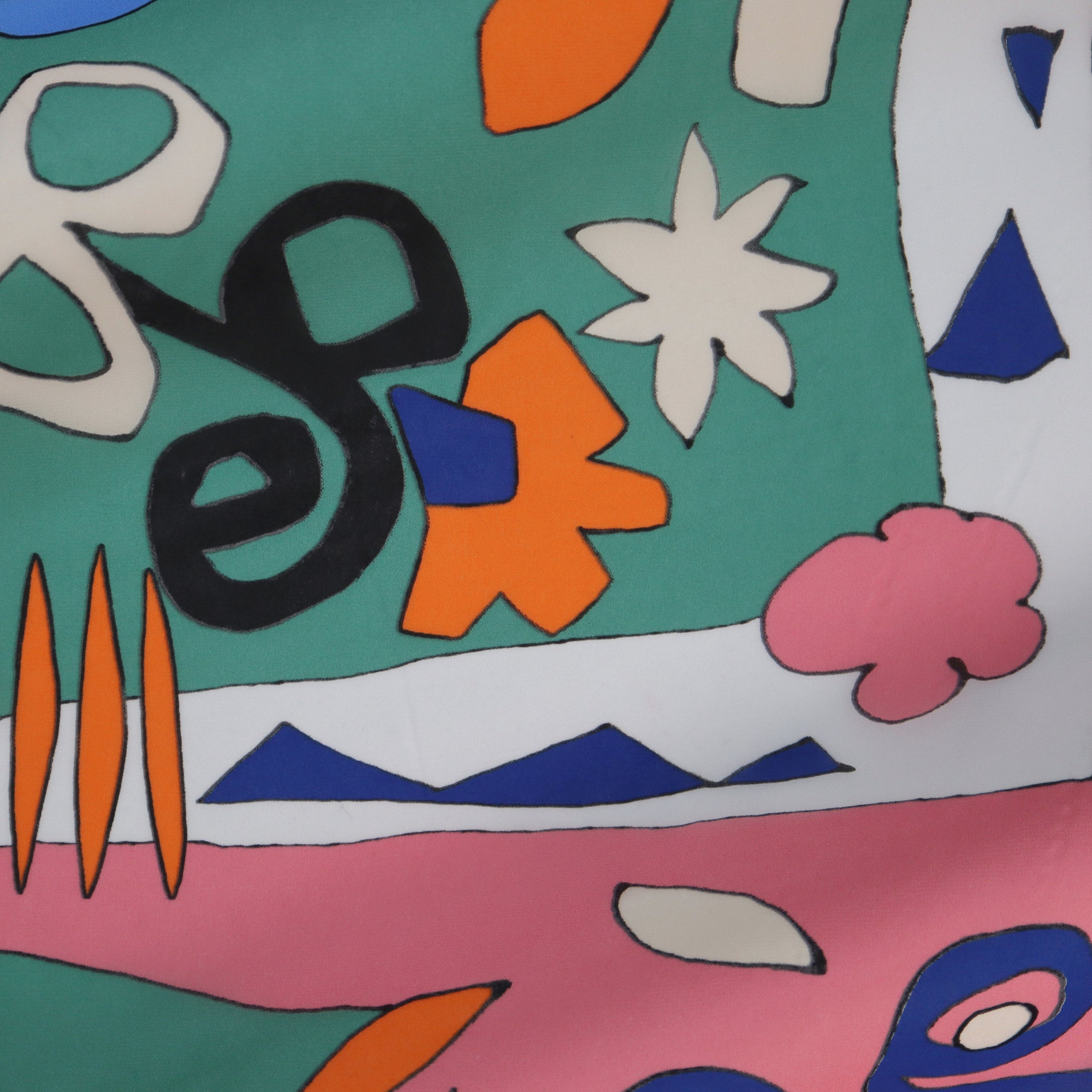 Filled with bright colours and fun shapes, this distinctive print will leave a lasting impression. This is a perfect warm weather fabric!
